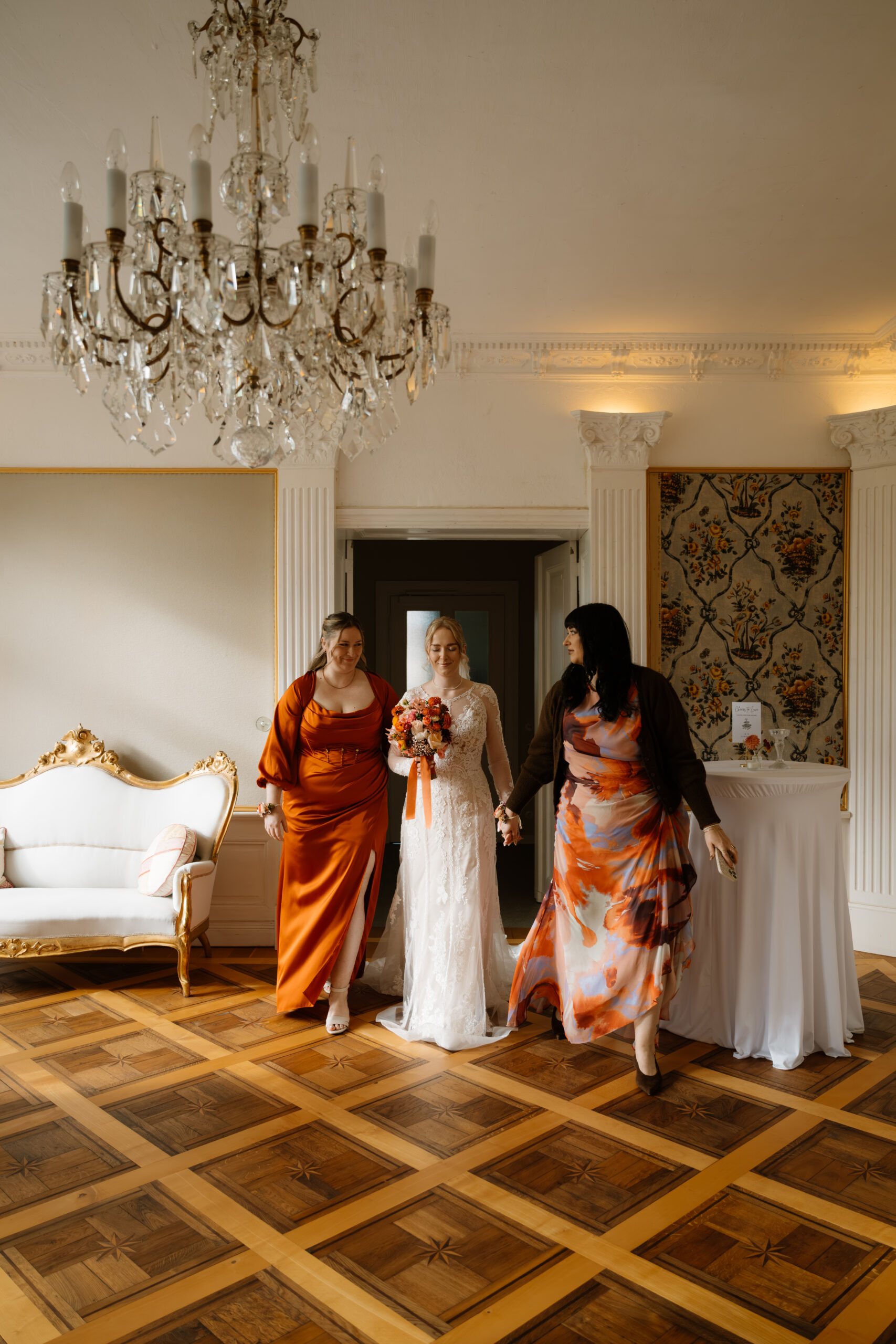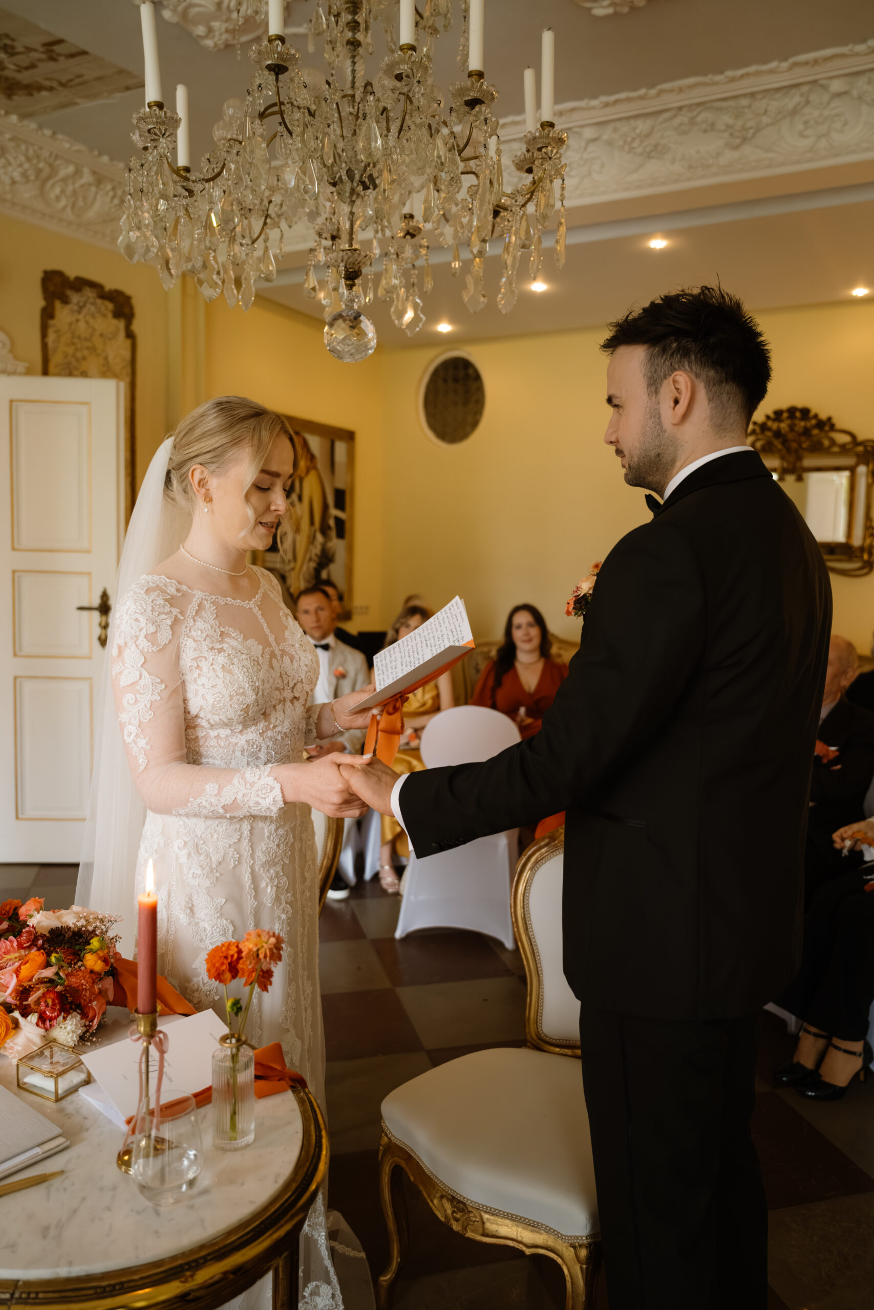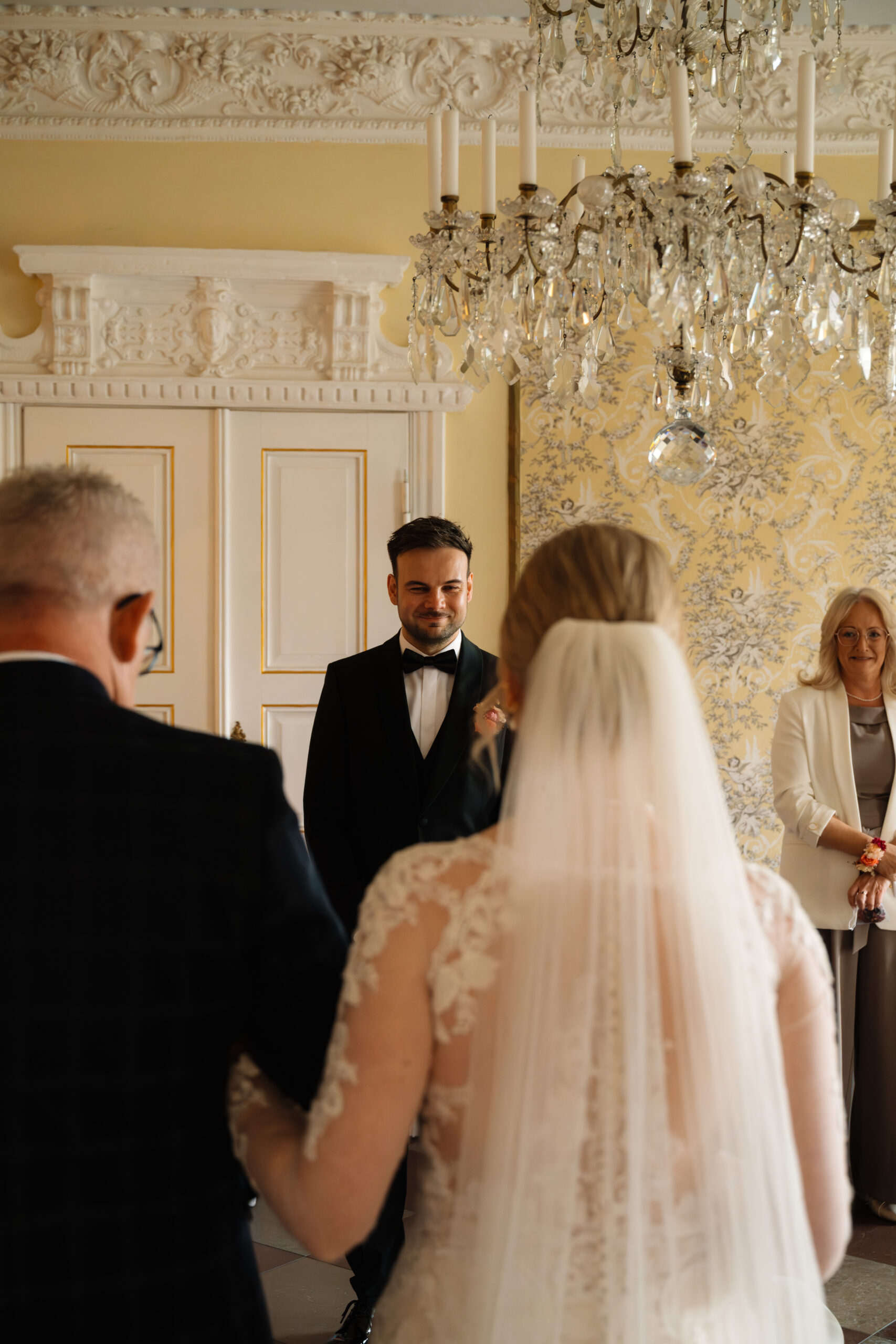Für eine Trauung ist das Schloss auch super flexibel: Es gibt z. B. Räume wie Kaminzimmer oder Gartenzimmer mit Blick ins Grüne (jeweils bis zu ca. 30 Sitzplätze) – das fühlt sich privat an, aber trotzdem festlich.