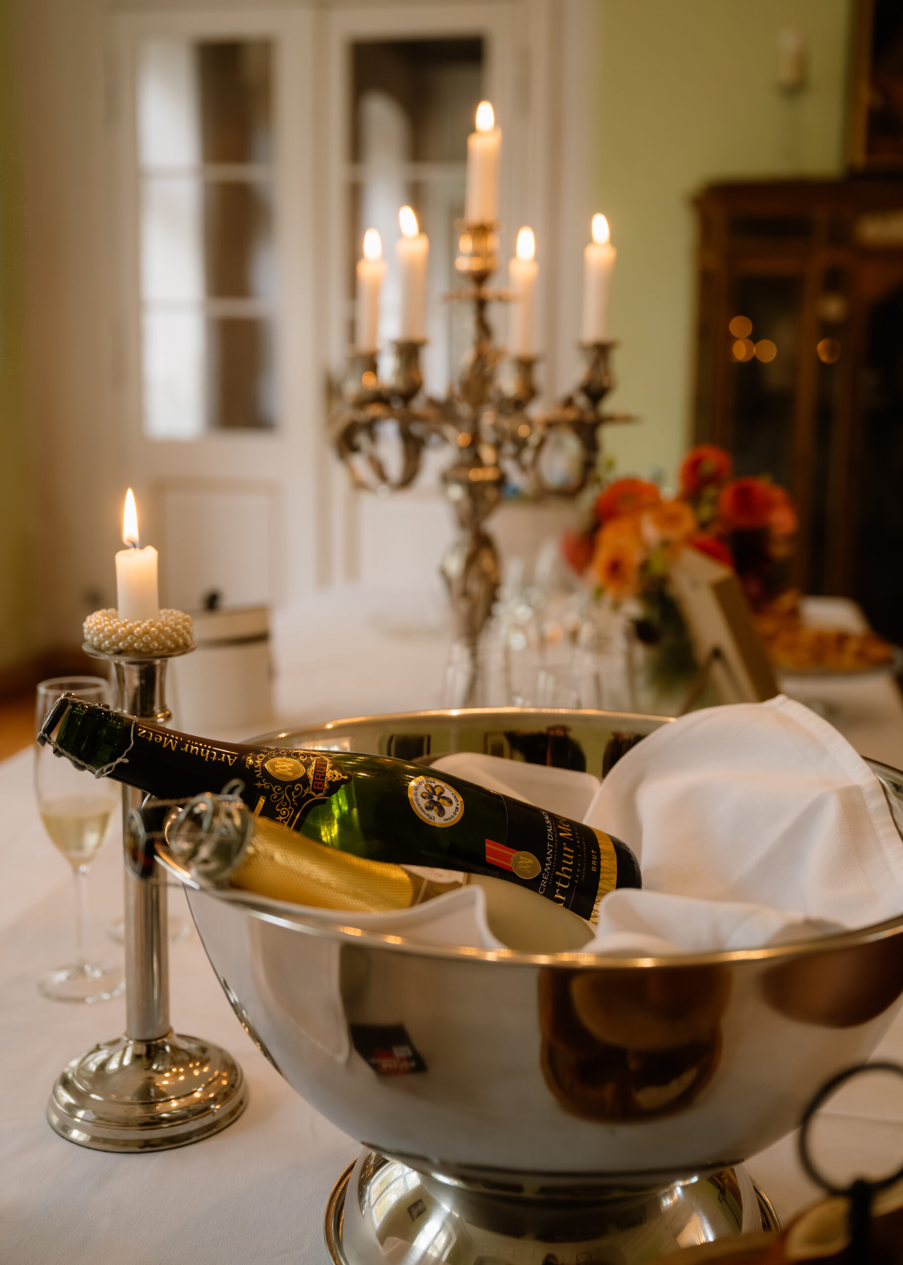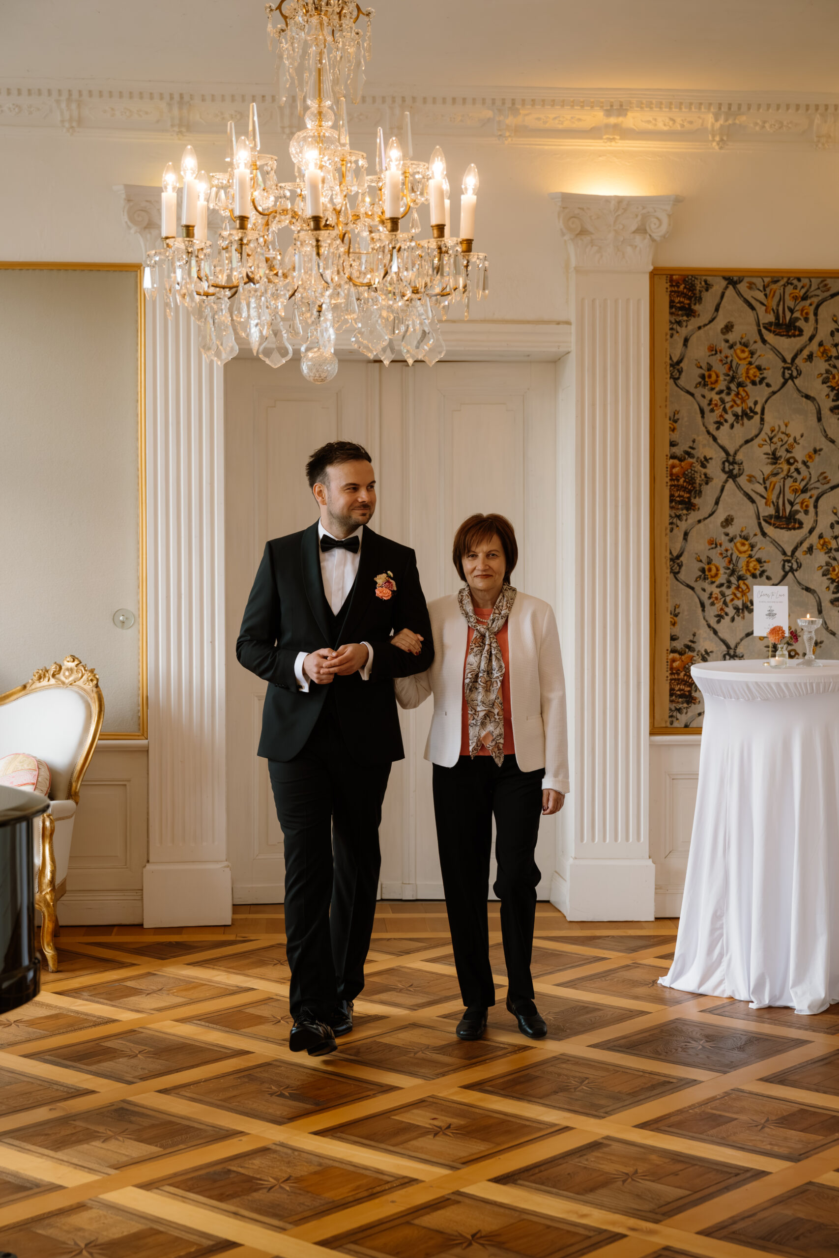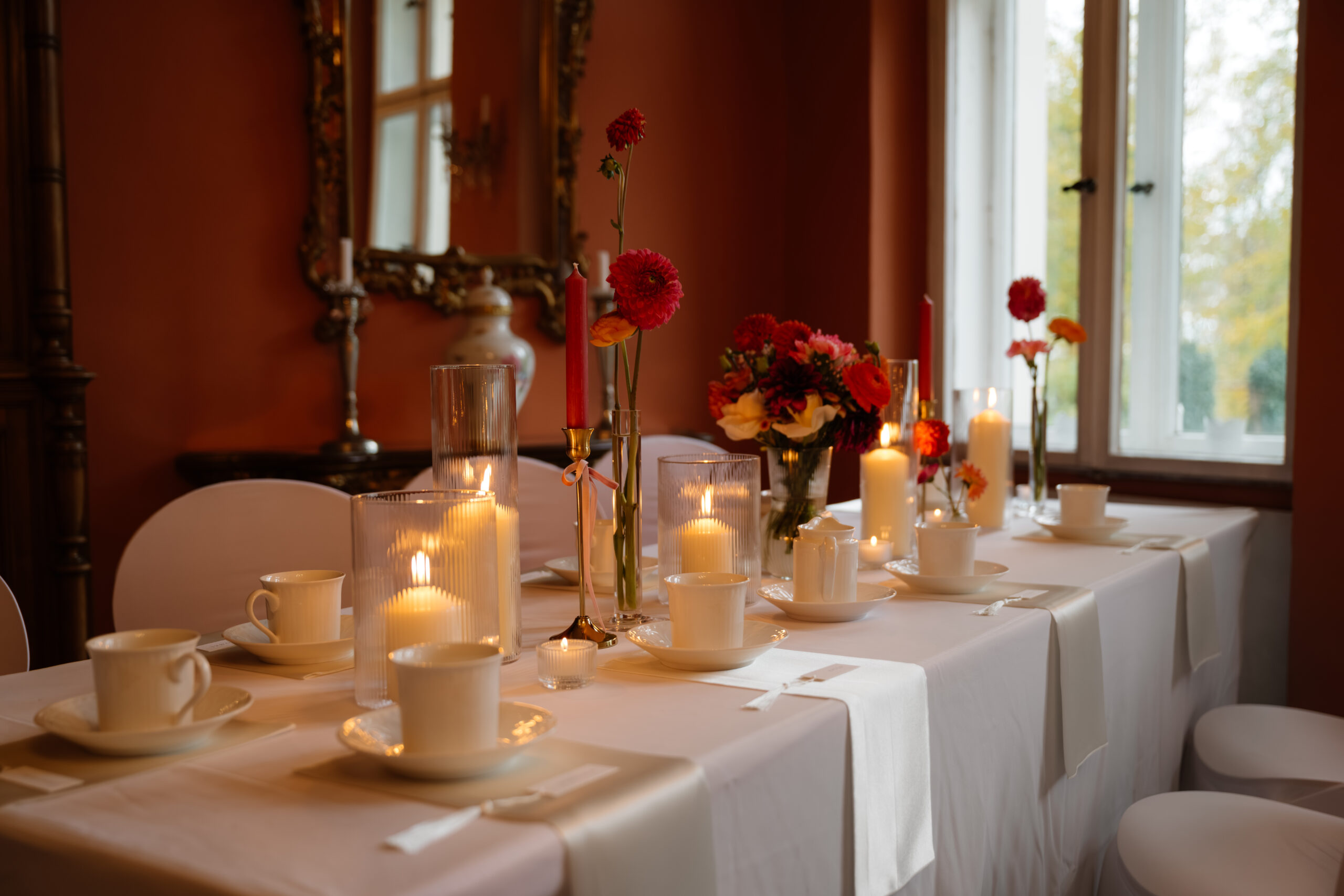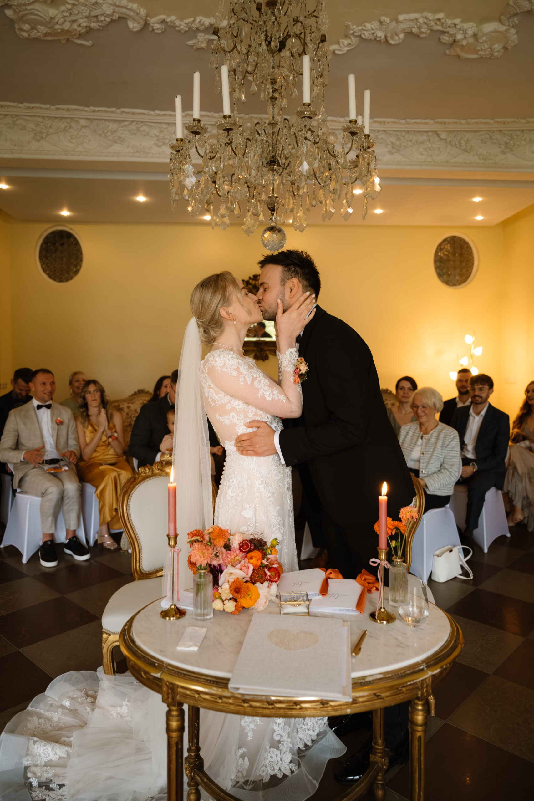 Für eine Trauung ist das Schloss auch super flexibel: Es gibt z. B. Räume wie Kaminzimmer oder Gartenzimmer mit Blick ins Grüne (jeweils bis zu ca. 30 Sitzplätze) – das fühlt sich privat an, aber trotzdem festlich.