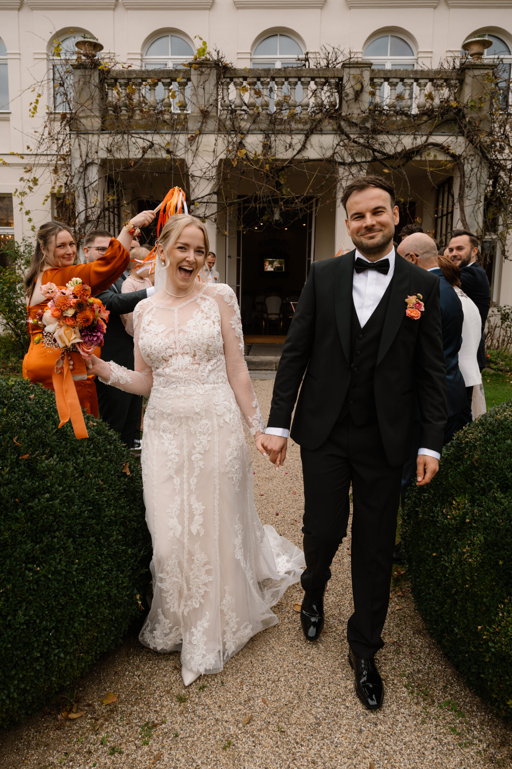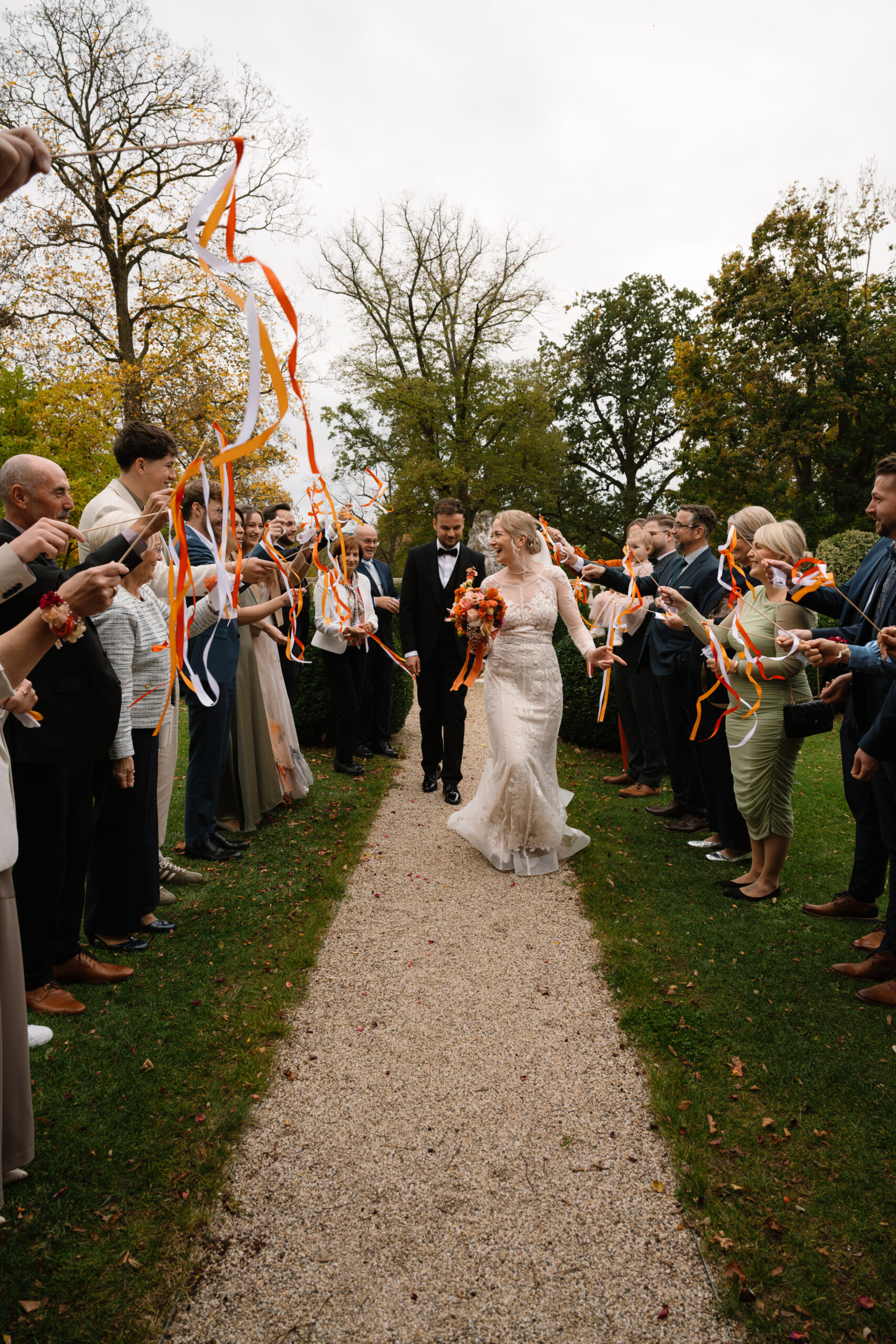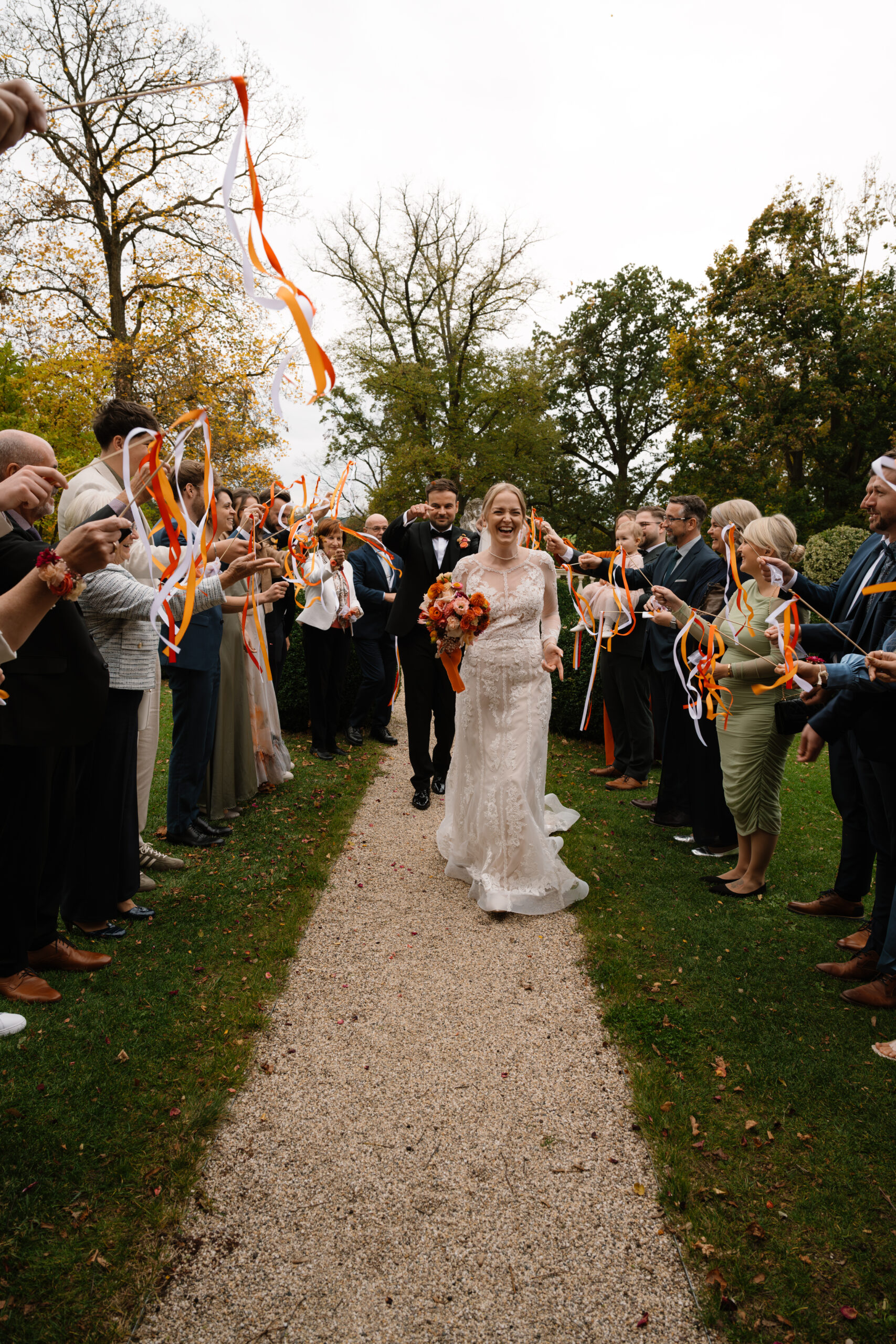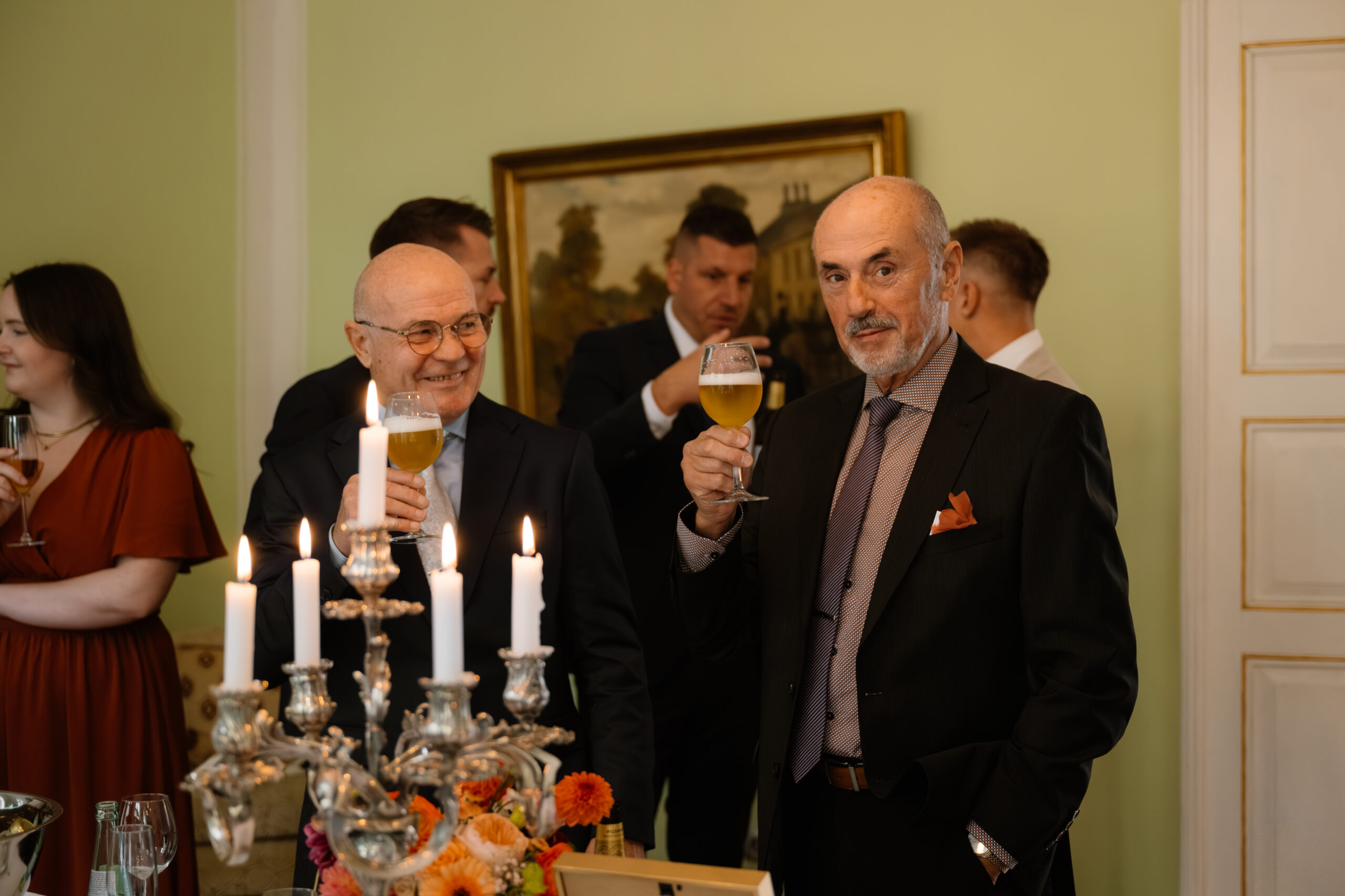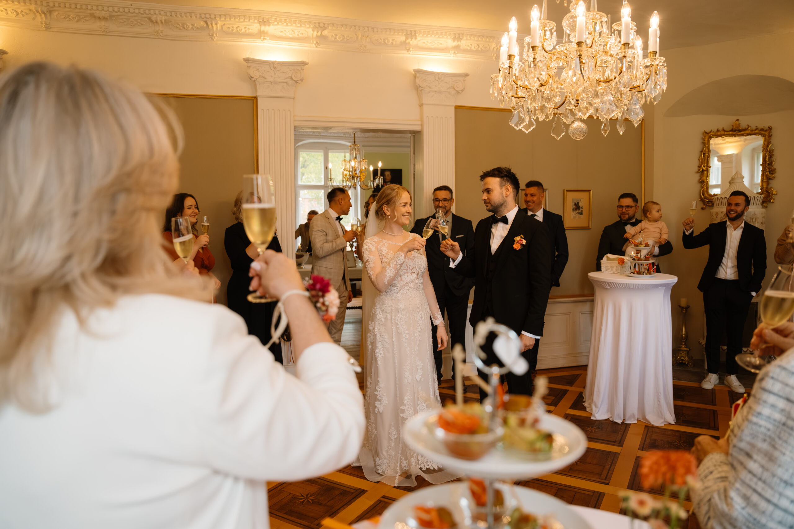 Nach der Trauung ging es für Emely & Sascha und ihre Gäste direkt weiter mit Anstoßen, Umarmungen und genau diesen echten Momenten, die ich am liebsten festhalte: keine steifen Posen, sondern einfach das, was passiert. Wenn ihr euch eine Hochzeit wünscht, die sich entspannt, intim und trotzdem besonders anfühlt, ist Schloss Rogäsen im Herbst wirklich ein Traum – vor allem mit den Farben im Park.