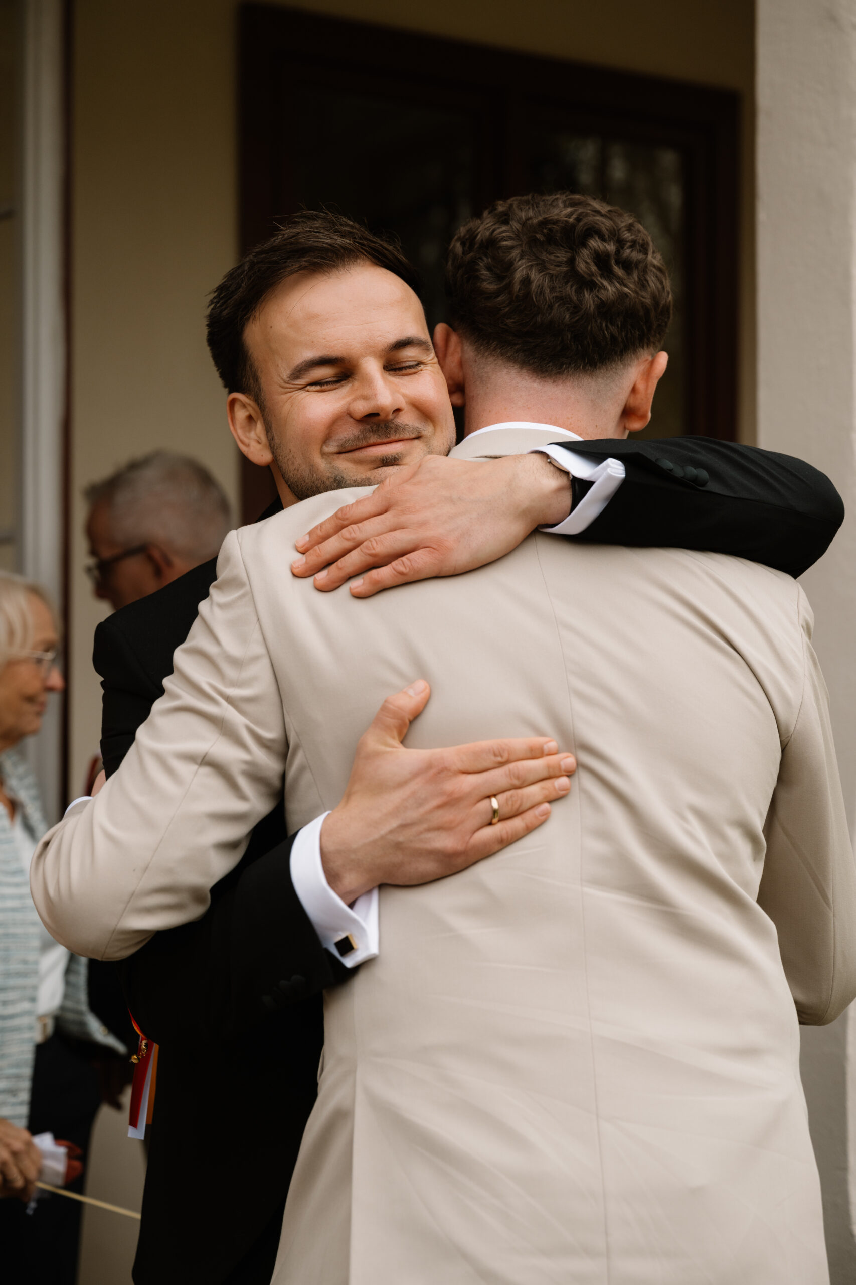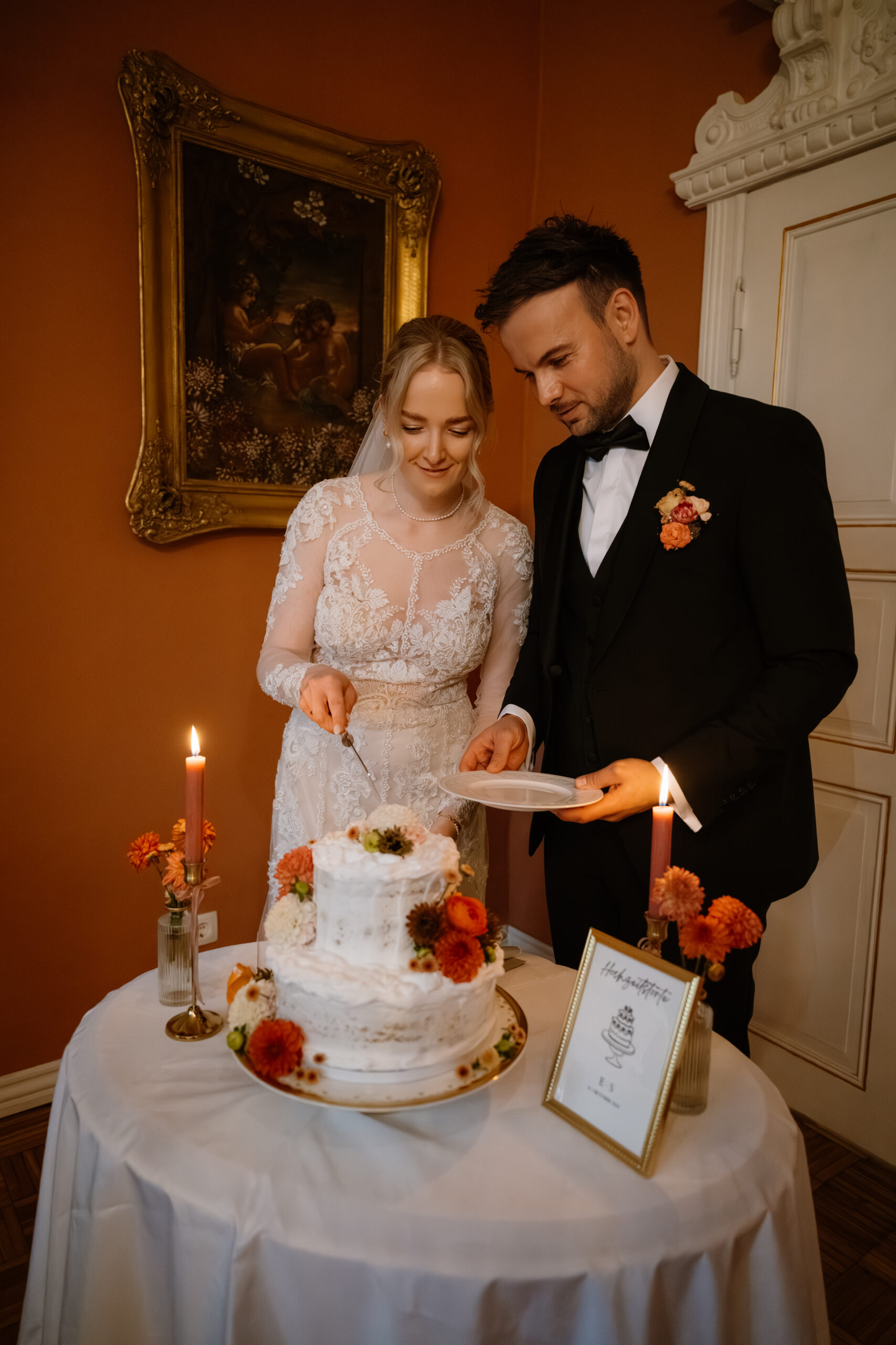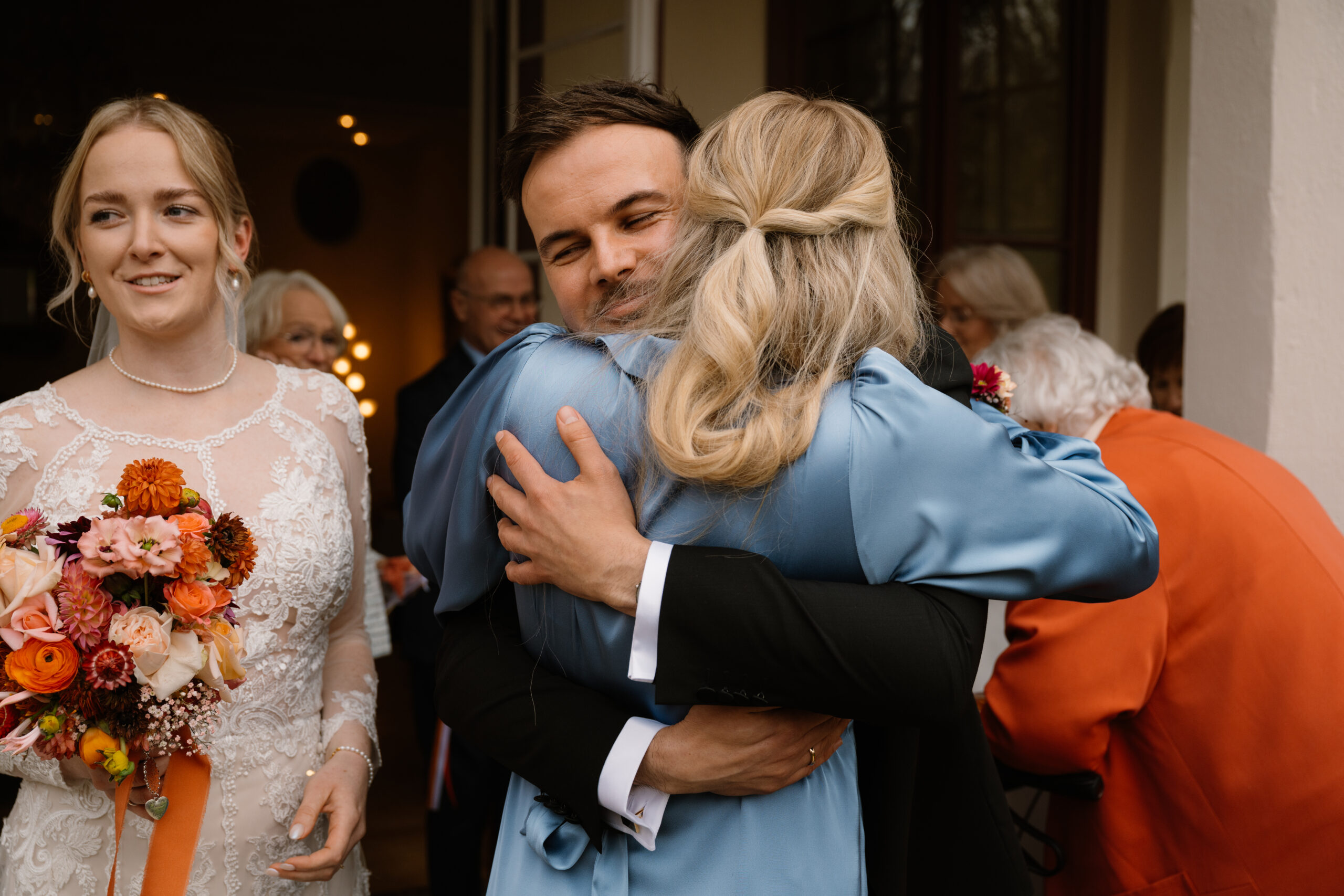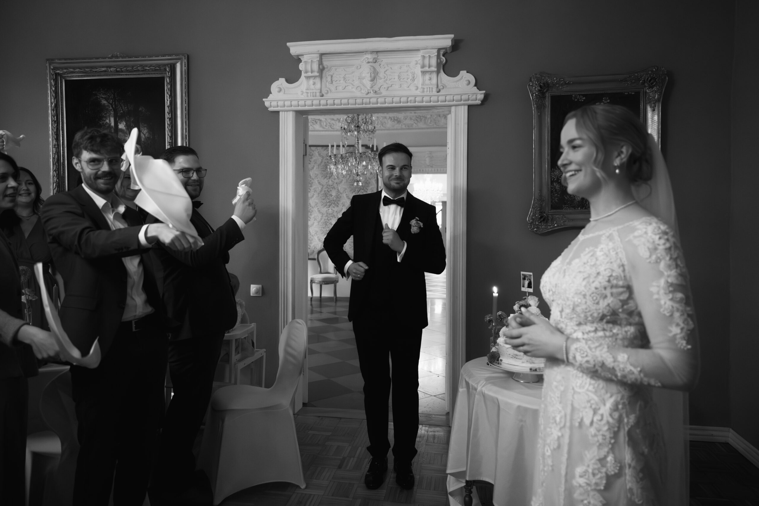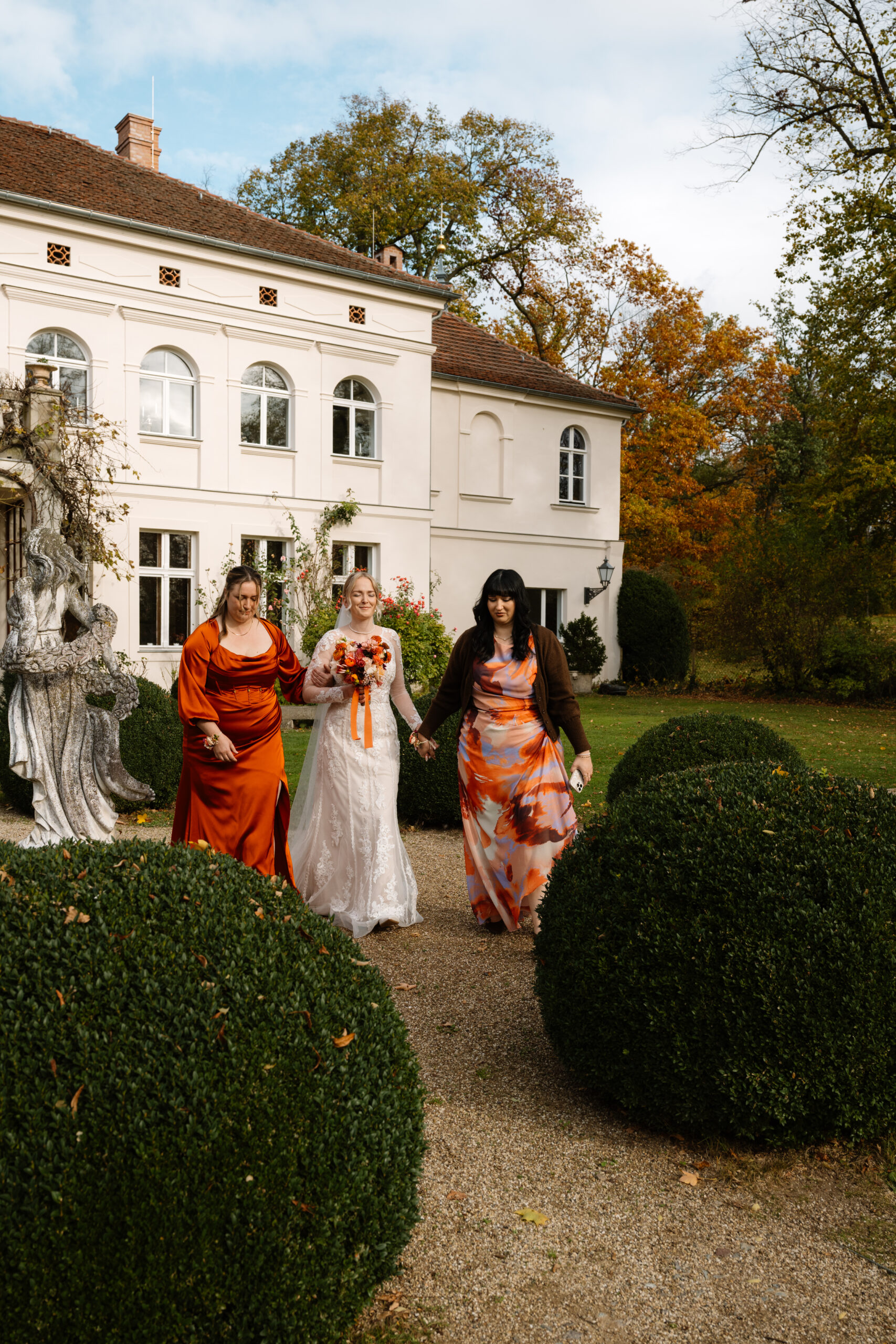 Nach der Trauung ging es für Emely & Sascha und ihre Gäste direkt weiter mit Anstoßen, Umarmungen und genau diesen echten Momenten, die ich am liebsten festhalte: keine steifen Posen, sondern einfach das, was passiert. Wenn ihr euch eine Hochzeit wünscht, die sich entspannt, intim und trotzdem besonders anfühlt, ist Schloss Rogäsen im Herbst wirklich ein Traum – vor allem mit den Farben im Park.