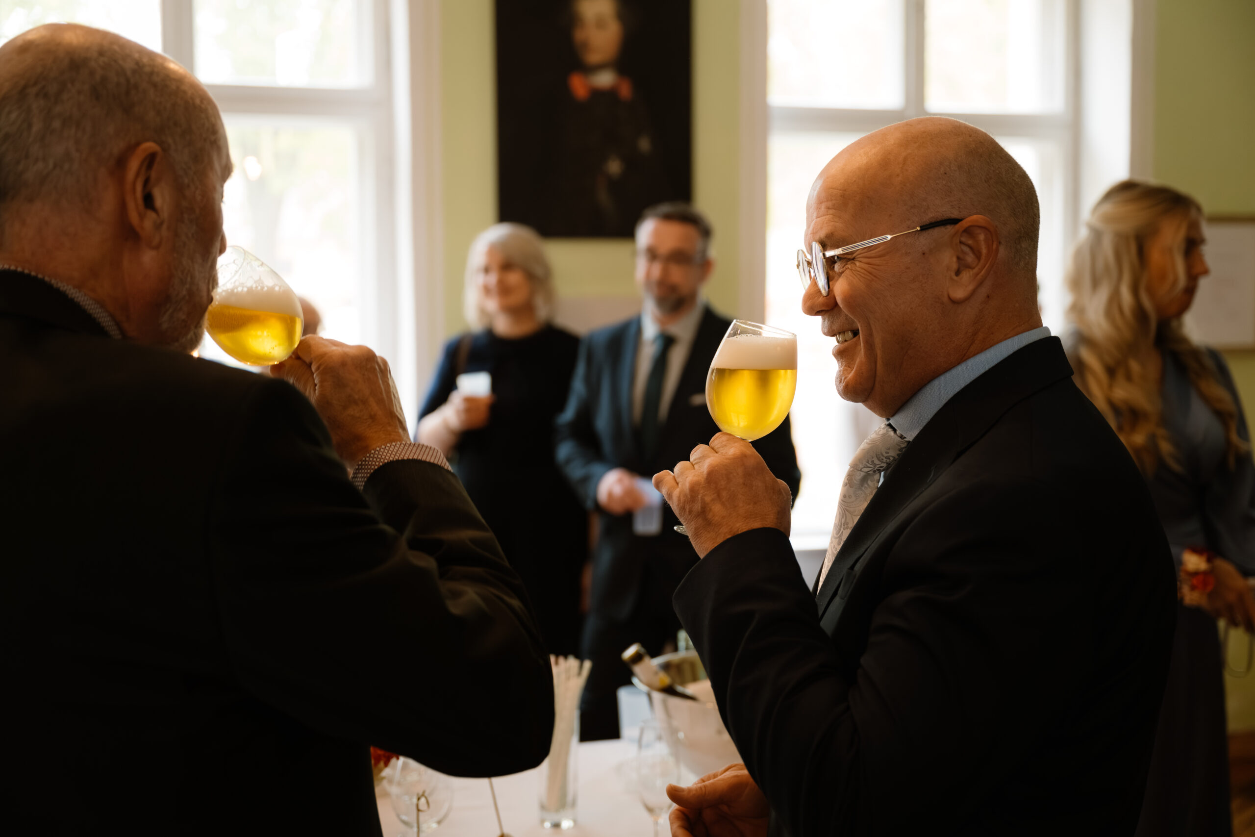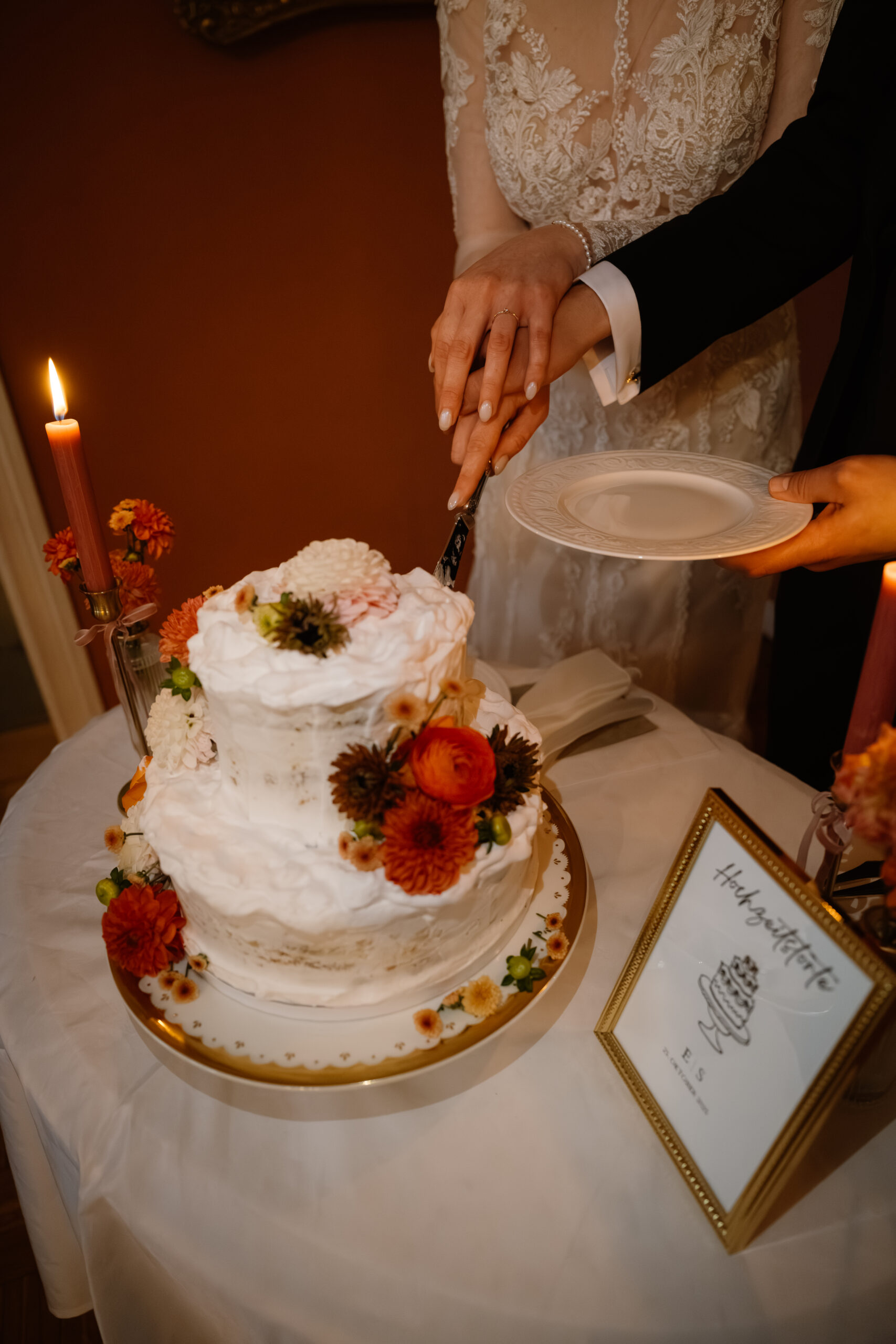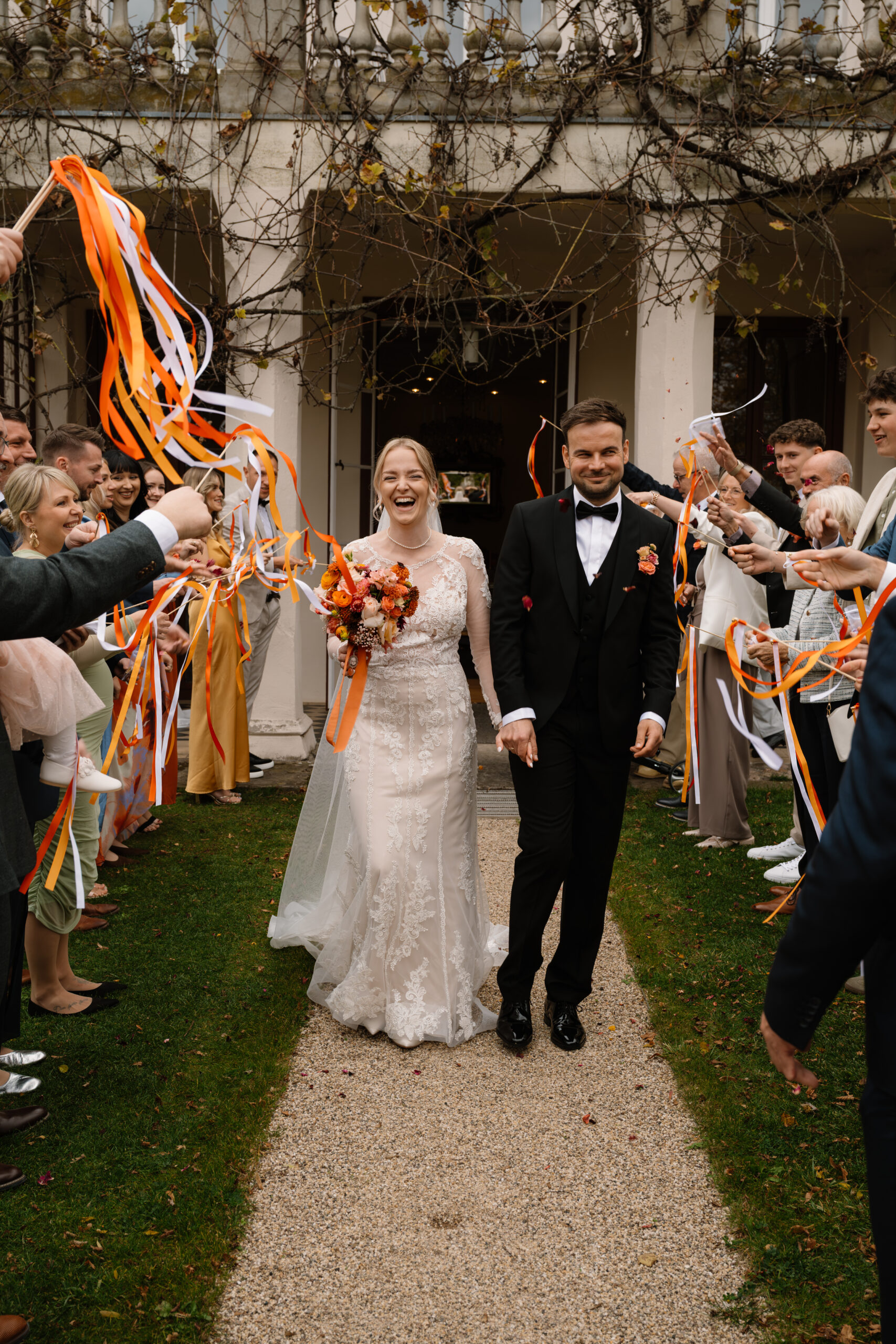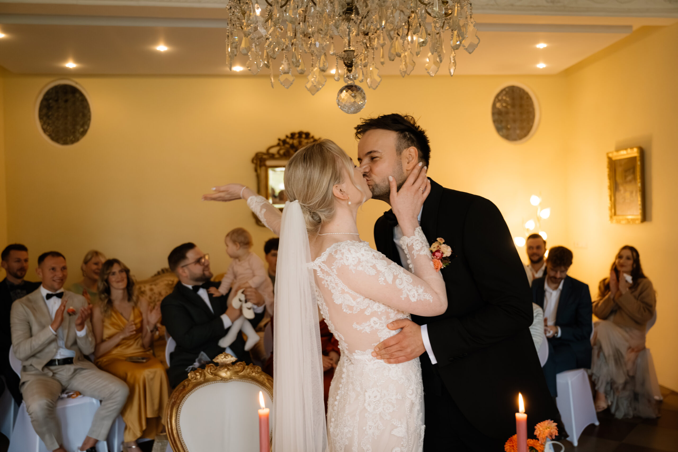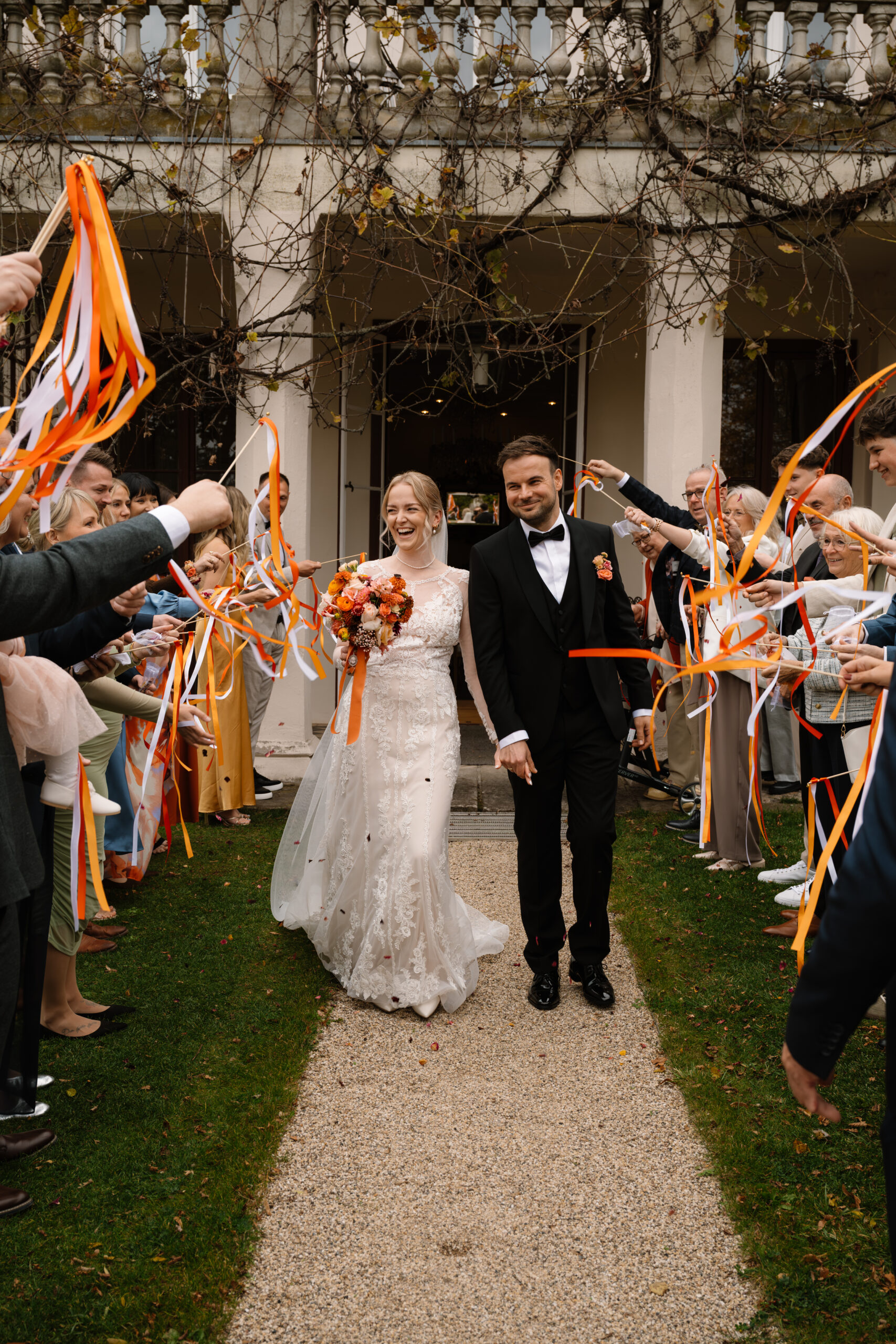 Nach der Trauung ging es für Emely & Sascha und ihre Gäste direkt weiter mit Anstoßen, Umarmungen und genau diesen echten Momenten, die ich am liebsten festhalte: keine steifen Posen, sondern einfach das, was passiert. Wenn ihr euch eine Hochzeit wünscht, die sich entspannt, intim und trotzdem besonders anfühlt, ist Schloss Rogäsen im Herbst wirklich ein Traum – vor allem mit den Farben im Park.